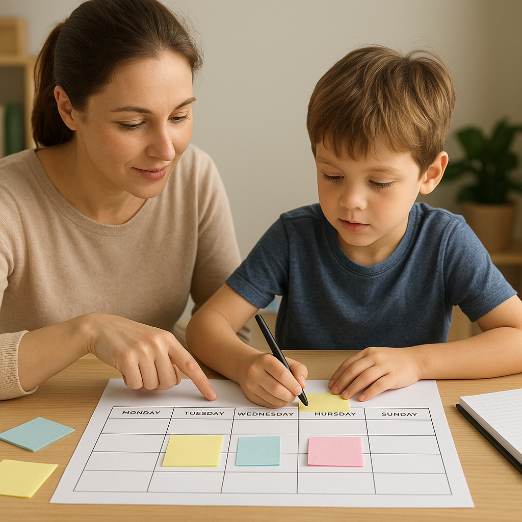 Przykładowy planer w formie prostego arkusza papieru pomaga śledzić zadania na cały tydzień. Wspólne uzupełnianie harmonogramu co kilka dni uczy elastyczności oraz umiejętności dostosowania planu do zmieniających się warunków. Warto wybrać format z dużymi polami, które dziecko może samodzielnie kolorować lub naklejać obrazki.